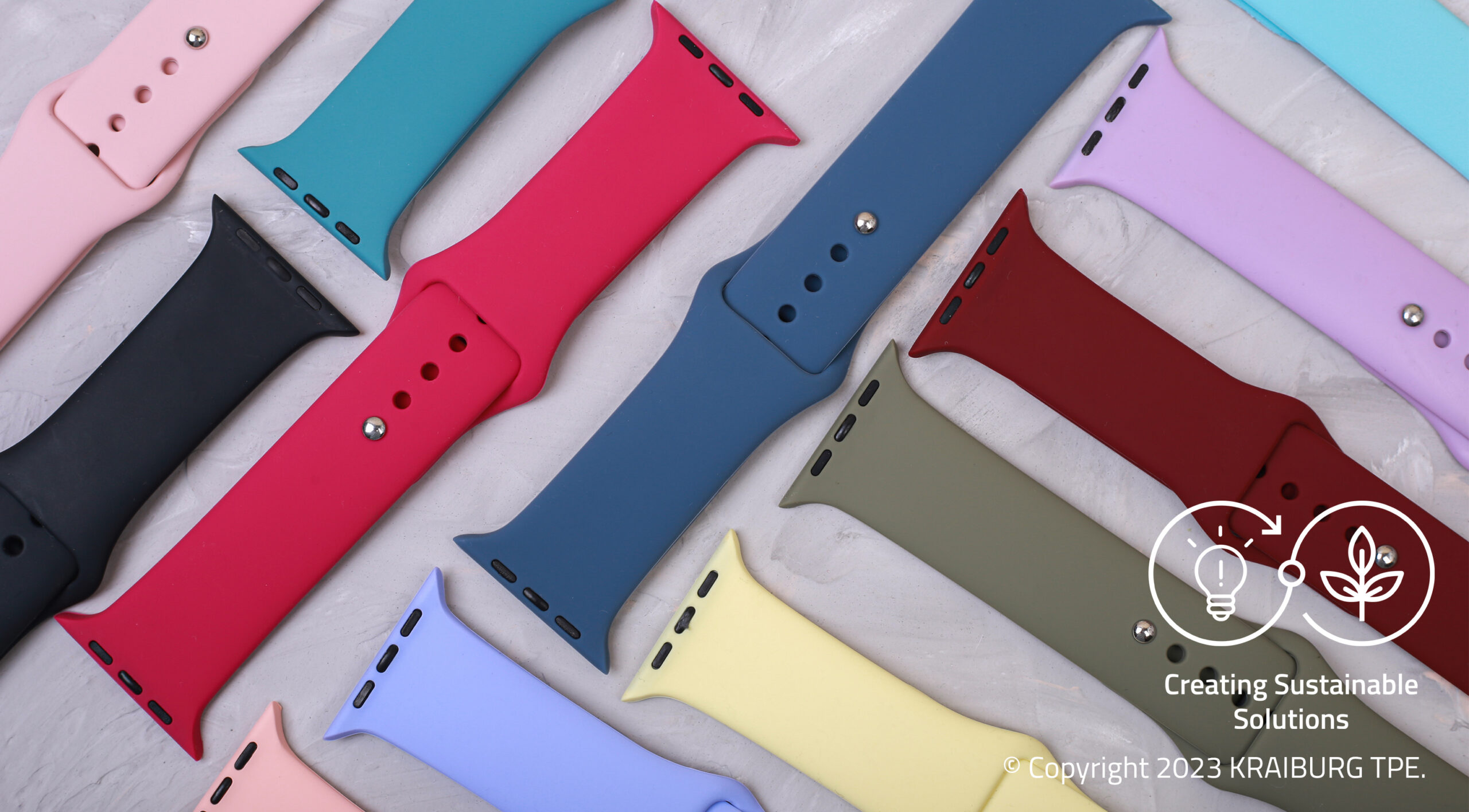 Given the importance of colors in smartwatch strap design, the RC/AD1/AP series can be customized in a wide range of appealing colors to suit customer preferences. Sustainability successes of our TPEs Besides smartwatch strap applications, KRAIBURG TPE’s recent sustainability innovations include a series of material solutions specially developed for automotive, consumer, consumer electronics, wearables and industry applications. Comprising up to 48% post-consumer recycled (PCR) and 50% post-industrial recycled (PIR) content, the material complies with multiple global standards such as FDA raw material compliance, RoHS and REACH SVHC requirements. KRAIBURG TPE also provides customers with product carbon footprint values.